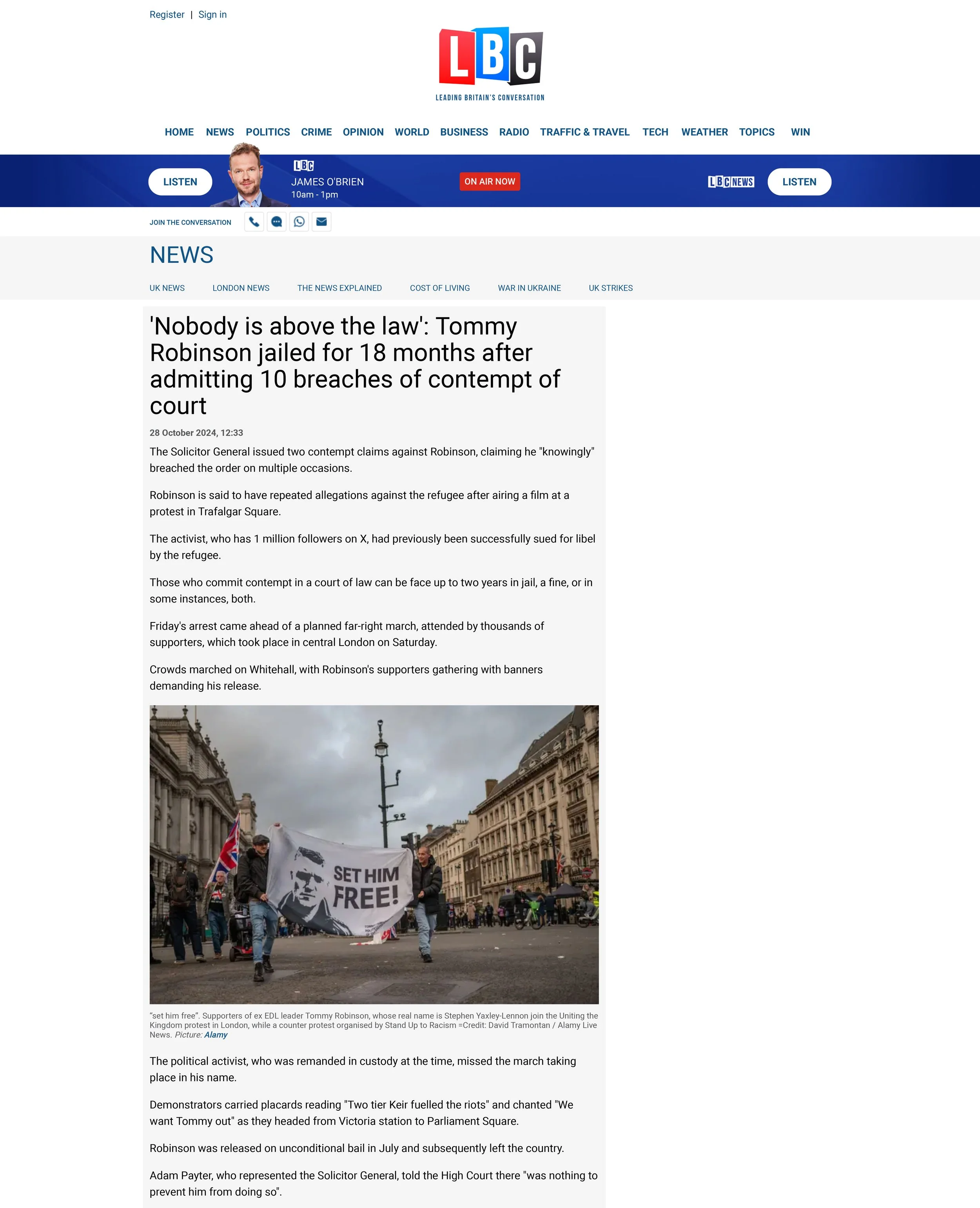 'Nobody is above the law'- Tommy Robinson jailed for 18 months after admitting 10... - LBC.jpg